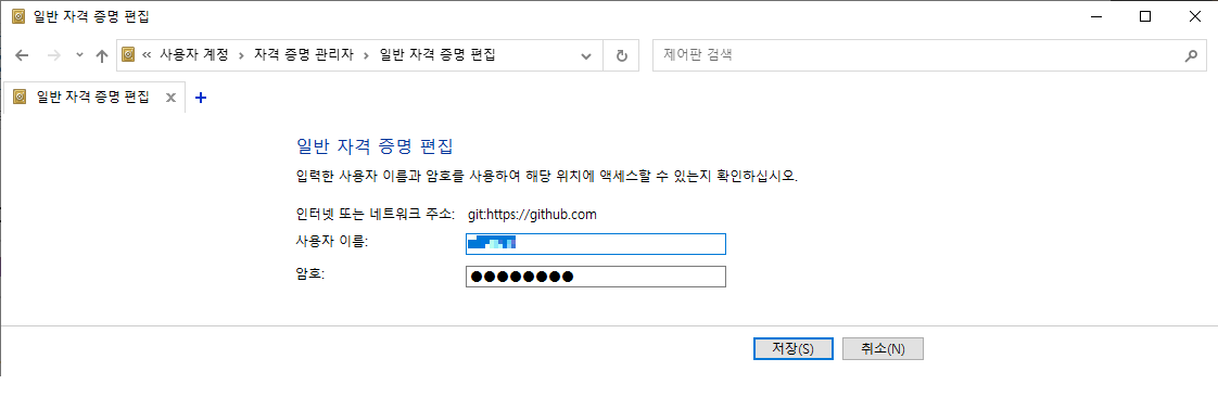 윈도우에 (기존Github계정)이 등록되어있었음.